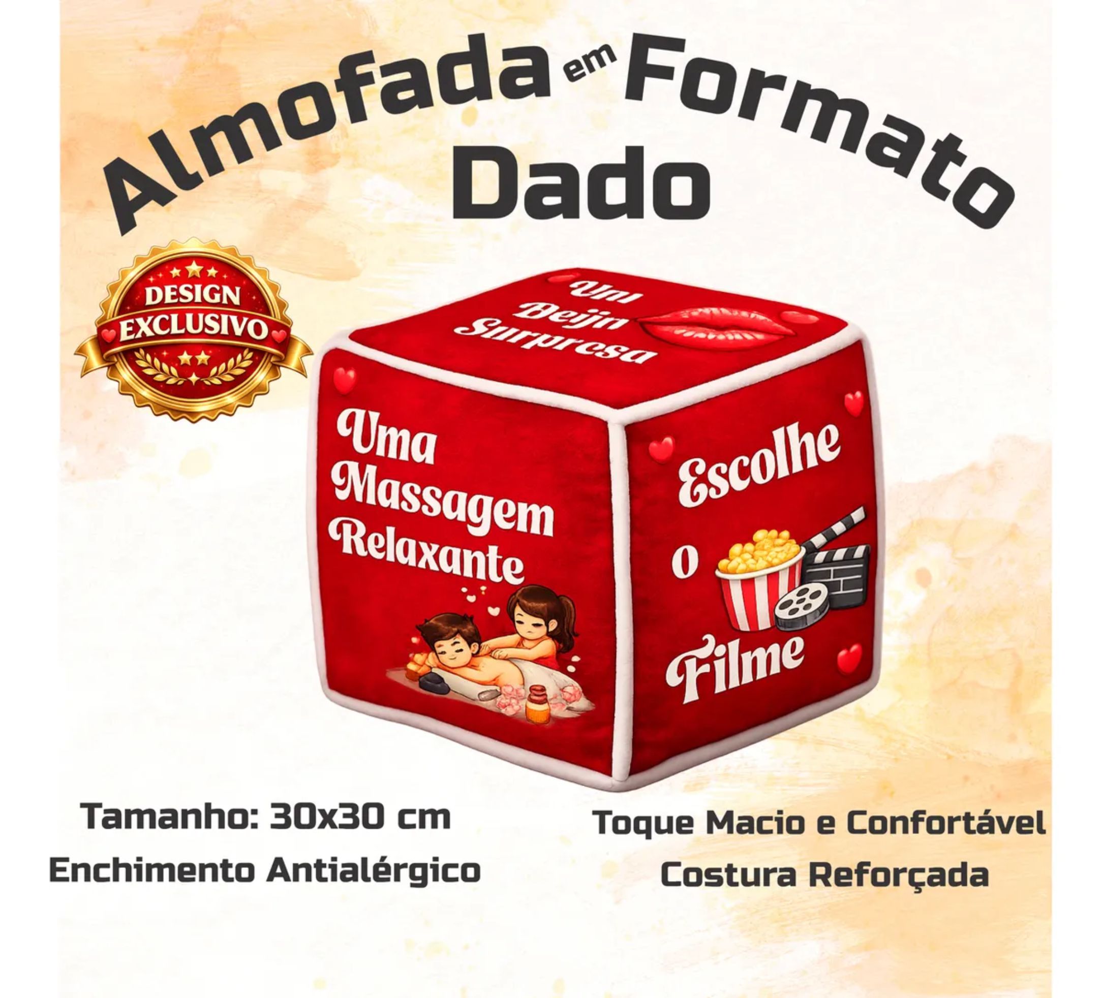 Surpreenda quem você ama com um presente divertido, criativo e cheio de significado! A Almofada Dado do Amor é perfeita para transformar momentos a dois em experiências especiais e inesquecíveis.